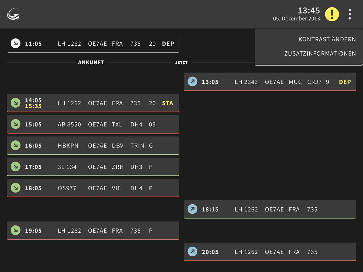 Für den Flughafen Graz wurde eine auf HTML 5-basierende App entwickelt, die dem Bodenpersonal des Flughafens den aktuellen Status der Flugzeuge anzeigt – von Lande- und Startzeiten, Flugnummern über Flugzeugtypenbezeichnung bis hin zu Boardingstatus und genauer Position der Maschinen.