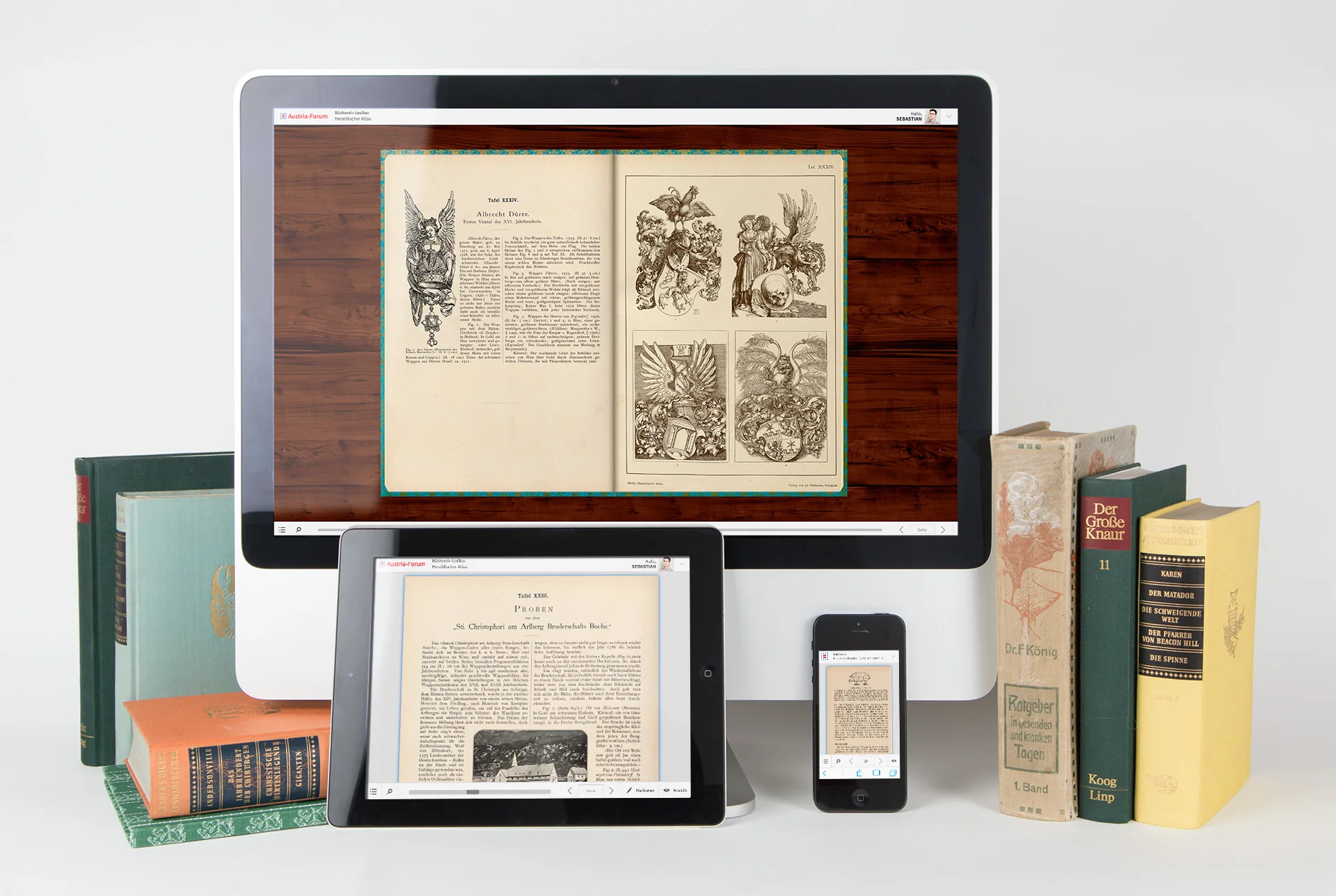 Das Forum Austria, eine allgemeine, unabhängige Wissens- und Diskussionsplattform mit Fokus Österreich, digitalisiert in Zusammenarbeit mit der Technischen Universität Graz alte Buchbestände. Manche dieser Bücher datieren bis ins 9. Jahrhundert zurück und sollten, so das Ziel, für die Ewigkeit erhalten und der Öffentlichkeit zugänglich gemacht werden. Gemeinsam mit EN GARDE ist im Sommer 2013 eine auf HTML 5 basierende App konzipiert, designed und im Frontend entwickelt worden.